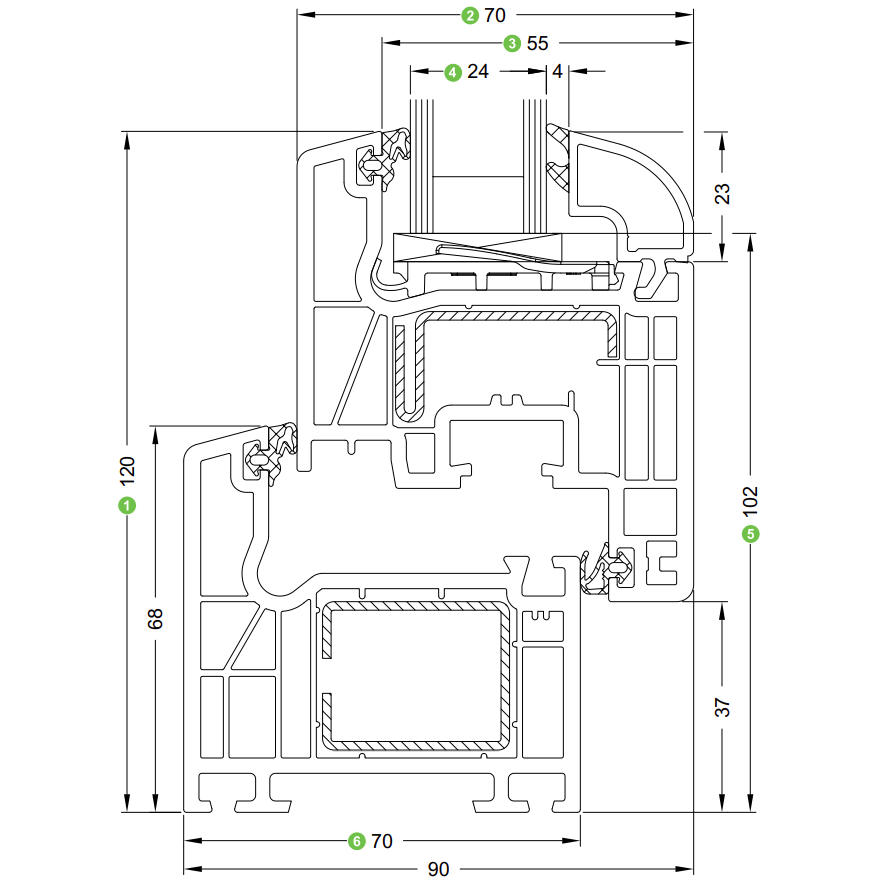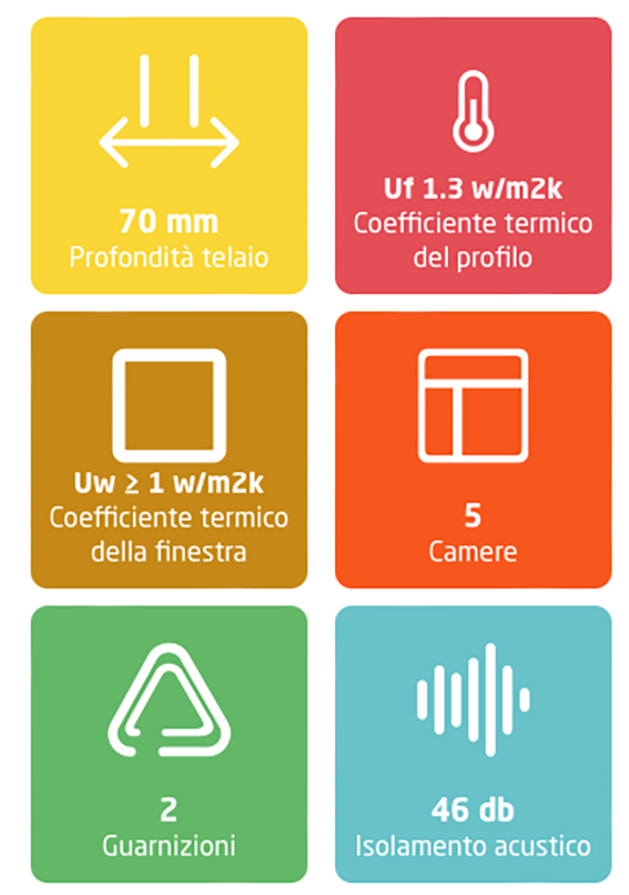 Geometria della stanza ottimizzata e una profondità di costruzione di 70 mm per un eccellente isolamento termico