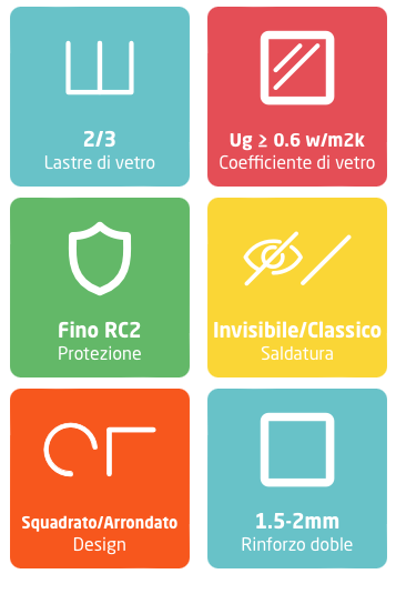 La copertura del bordo del vetro da 18 mm garantisce una minima dispersione di calore nell’area di sigillatura del bordo del vetro